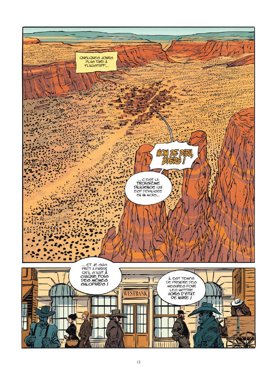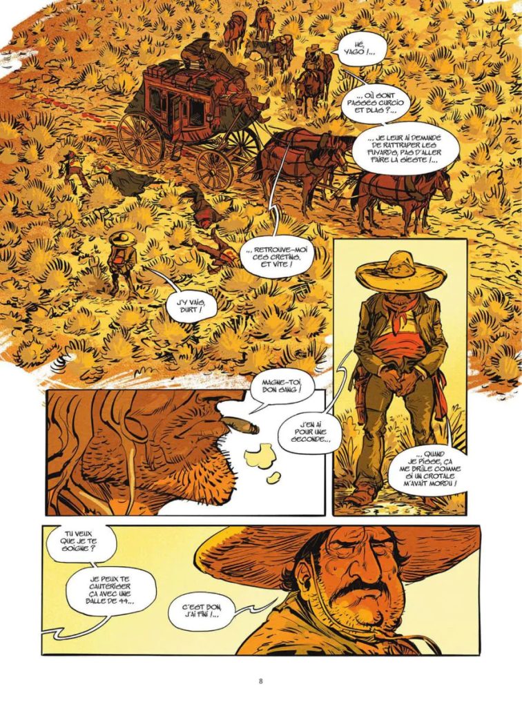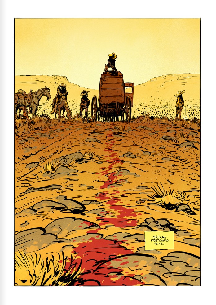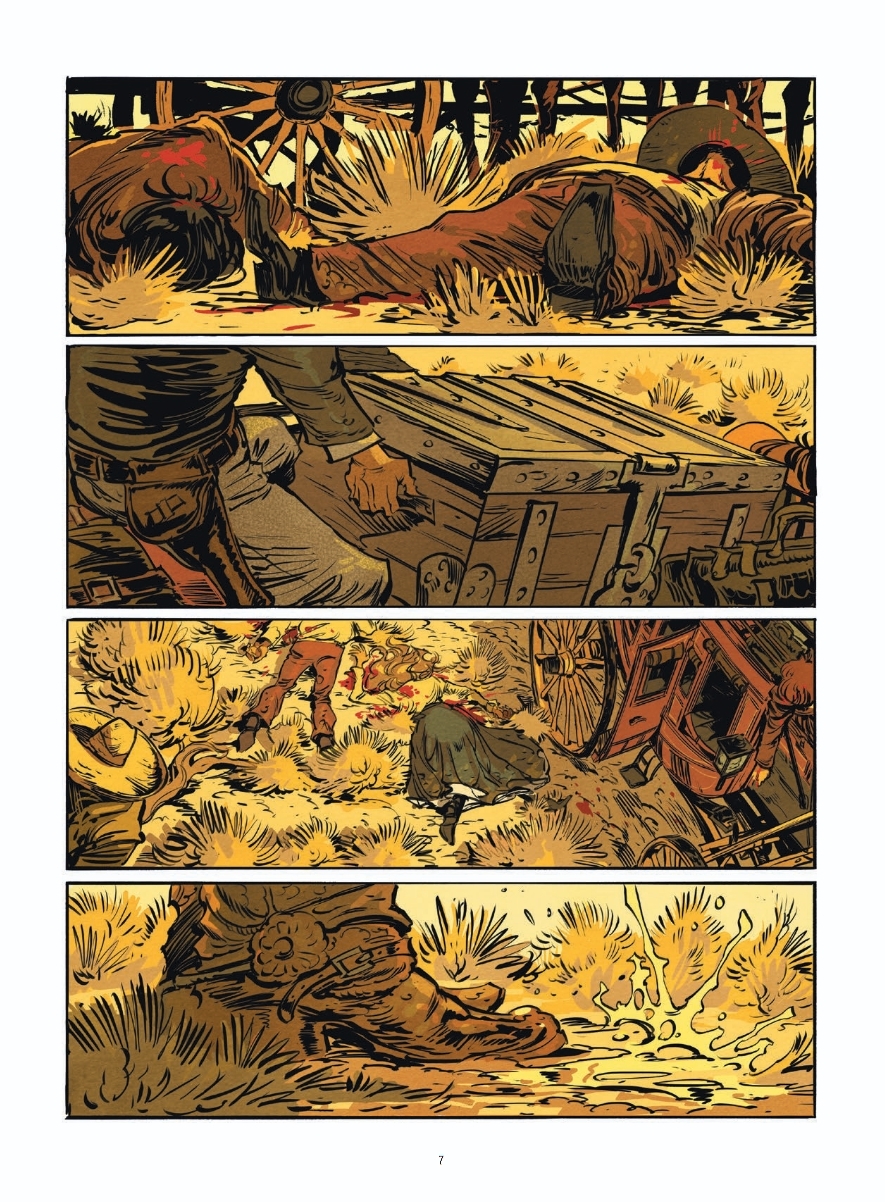 Pas moins de 154 planches rythment cette histoire complète, qui prend parfois des airs de cinémascope. Il suffit de commencer la lecture des premières pages de Leave them alone, dont l’histoire est située en Arizona, en 1874, pour s’en convaincre. La scène d’ouverture, parfaitement maîtrisée et qui alterne plans larges et plans serrés, vous happe d’emblée.