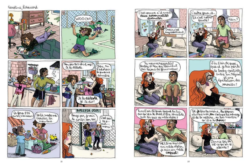 Dès les premières pages, le ton est donné. Pas de grandes leçons et pas de discours moralisateurs. On suit des scènes familières, des dialogues saisis sur le vif, ces petits moments où tout se joue sans qu’on y prête attention. Une remarque au repas, un compliment maladroit ou un jeu de rôle qui dérape. Additionnées, ces séquences que chacun a connues mettent en lumière la transmission à notre insu de normes viriles. La BD révèle ainsi la mécanique silencieuse qui fabrique la masculinité toxique, et donne des clés pour l’enrayer.