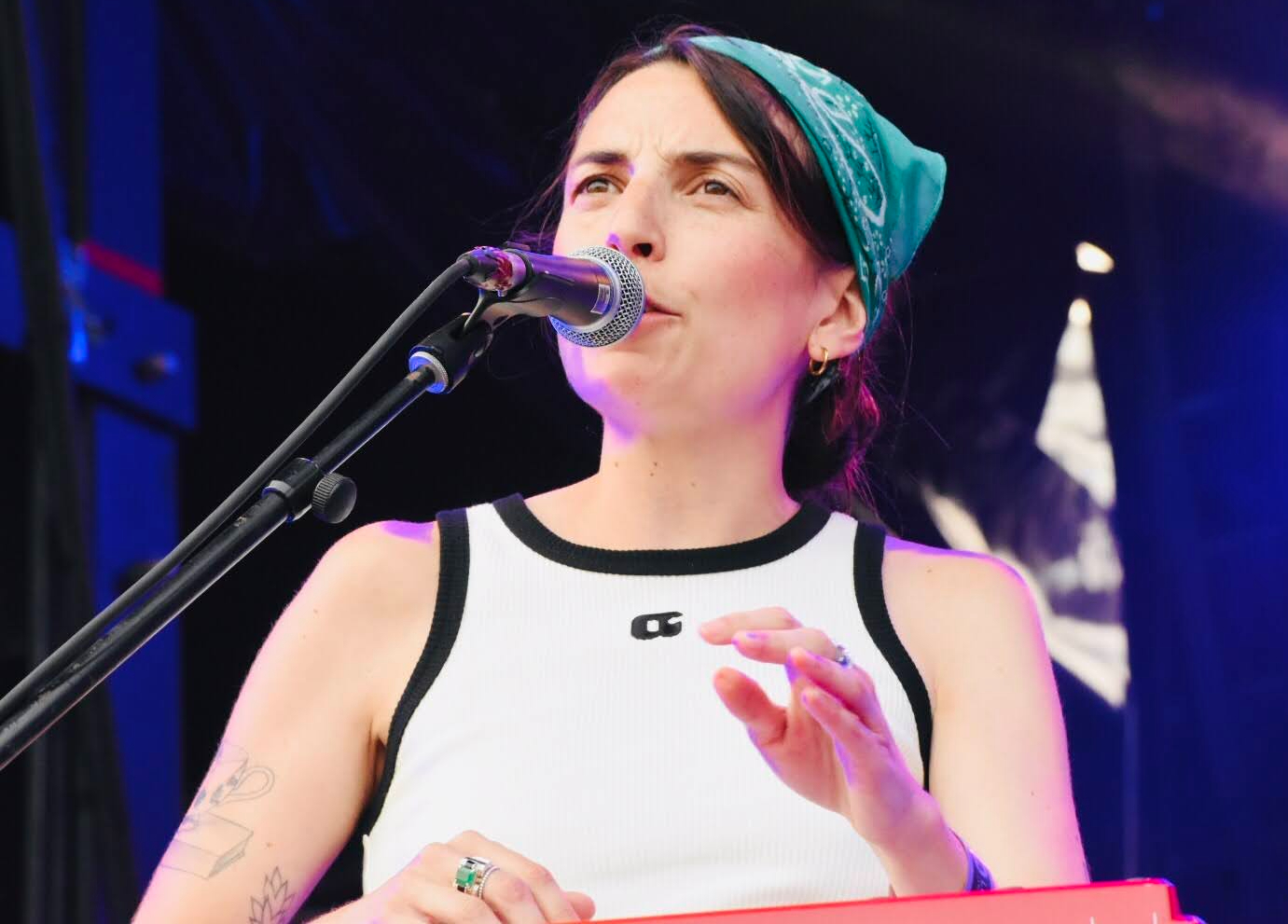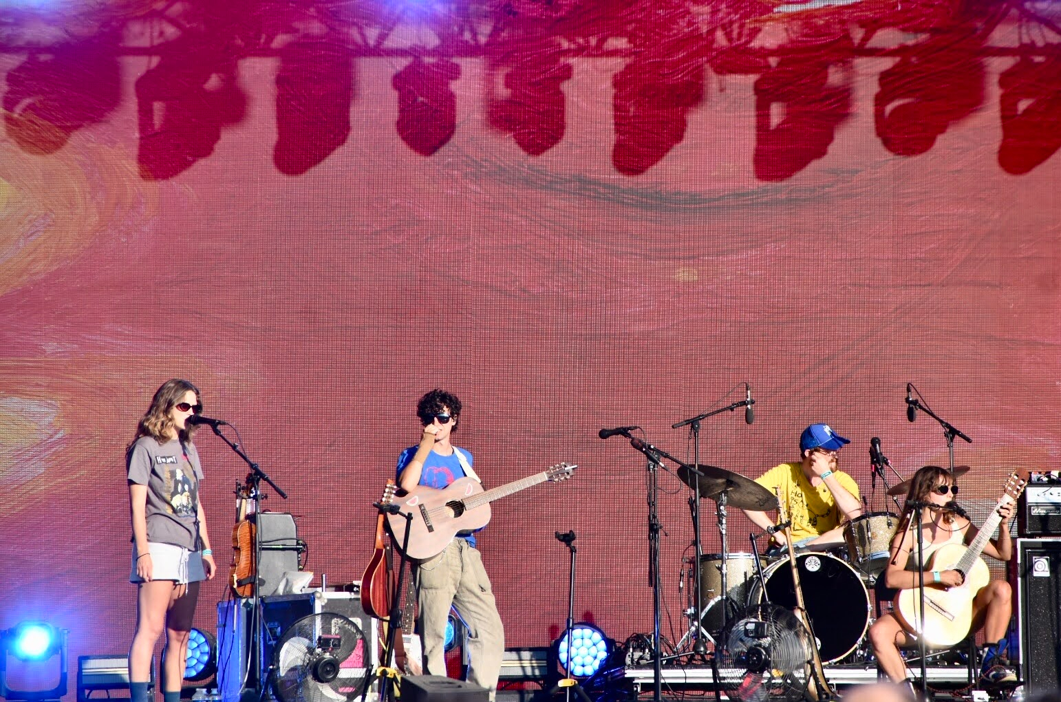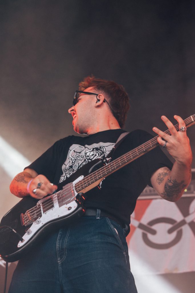 On s’avançait ensuite le cœur un peu serré devant Porridge Radio, le formidable groupe post-punk de Brighton, non pas qu’on craignait que cela soit mauvais, bien au contraire. Non, tout simplement, le quatuor a récemment annoncé sa future séparation donnant ici sa dernière prestation française. Le concert fut magnifique, sous un soleil tout rouge, ce qui nous rend encore plus triste de ne plus les voir ensemble, même si le groupe semblait y gagner une nouvelle énergie et une complicité renforcée.